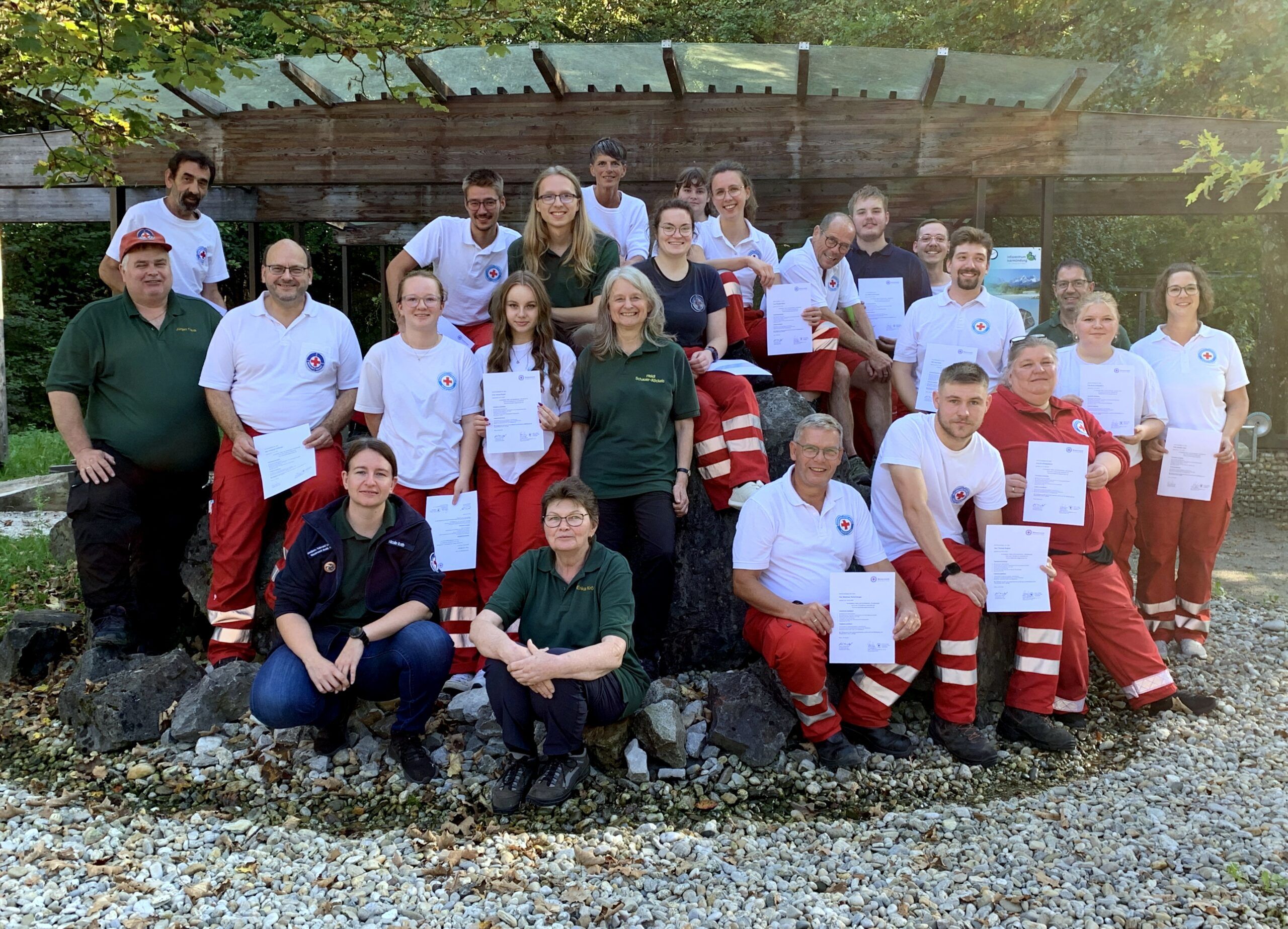 17 Teilnehmer aus den Kreiswasserwachten Landshut (Jennifer Hirth), Tirschenreuth (Bettina Dötterl) Bayreuth (Moritz Elias Müller), Nürnberg Stadt (Lars Irimie), Selb (Anja Schwarzmeier, Moritz Schönberner), Wunsiedel (Felix und Jürgen Heinrich), Passau (Eva und Anna Roßgoderer, Thomas Bogner, Josef Buchetmann) und aus Deggendorf (Christoph Göttlinger, Matthias Hartenberger, Lea Braick, Oliwia Popiel und Theresa Haberl) nahmen daran mit Interesse teil. Das Ausbilderteam des Bezirks Niederbayern/Oberpfalz mit Heidi Schauer-Köckeis, Jürgen Tauer, Erika Kröll, Nicole Roth, Julia Gehr und den Ausbilderanwärtern, Lisa Emmerling, Björn Schramm und Thomas Schauer-Köckeis leiteten in gekonnter Manier die Ausbildung zum Streifenführer „N“.