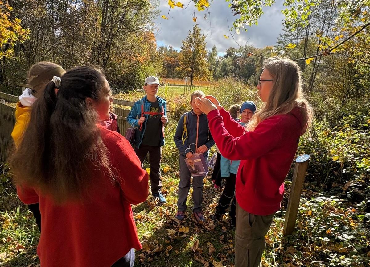 Beim anschließenden Keschern in den kleinen Gewässern blieb der Fang diesmal aus – der Jahreszeit geschuldet waren kaum noch Wassertiere zu finden. Ein besonderes Highlight war der Besuch bei den Bienen: Hier erhielten die Jugendlichen einen spannenden Einblick in das Leben im Bienenstock und erfuhren, warum Bienen so wichtig für die Bestäubung vieler Pflanzen und Bäume sind.