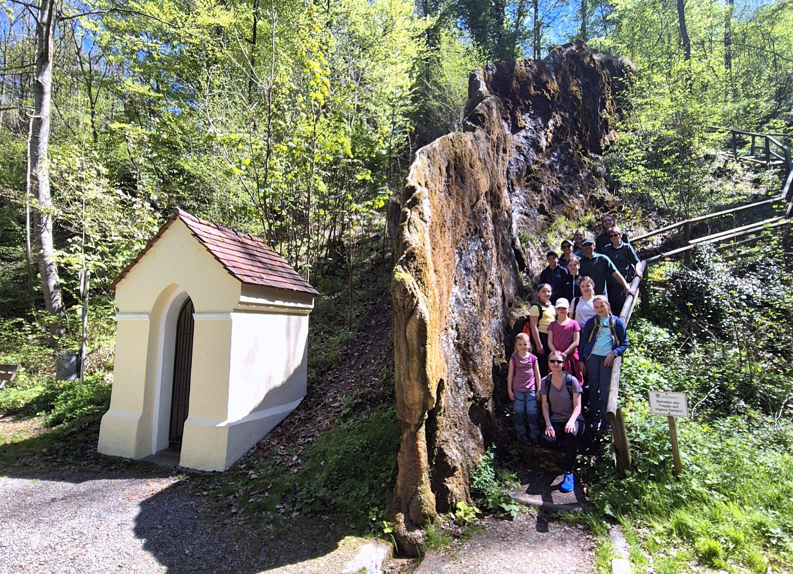 Da das Thema der Naturstreife „Zwischen Glaube, Wissenschaft und Aberglaube“ war, wurde auch auf diese Themen eingegangen. Gleich neben dem Felsen steht die Johanniskapelle. Das älteste Bild des wachsenden Felsen ist auf dem Altar der Usterlinger Kirche von 1520 zu finden. Hier wird Jesus im Vordergrund des Felsen vom Johannes dem Täufer getauft. Deswegen wird der Felsen auch „Johannisfelsen“ genannt. Man sagt dem Wasser, das auf der Rinne am Felsen nach unten fließt, eine heilende Wirkung bei Augenkrankheiten zu.